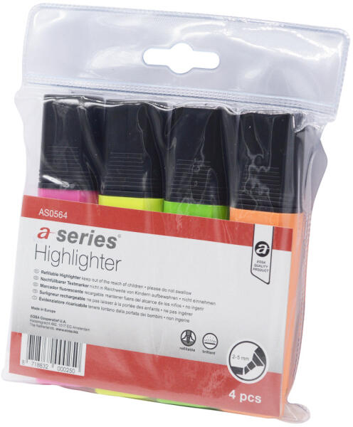 A-Series Szövegkiemelő 1-5mm vágott hegy, lapos test, a-series 4-es készlet (AS0564) - cartridge