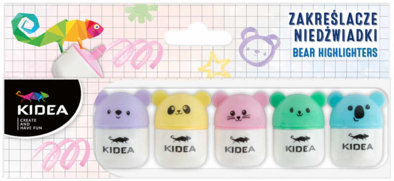 Maci formájú szövegkiemelő 5 db-os, Kidea. Ezek a cuki szövegkiemelők élvezetesebbé teszik a tanulást, de kreatív alkotásokhoz is alkalmas. Csomagolás mérete: 4,4x17,2x2,5cm